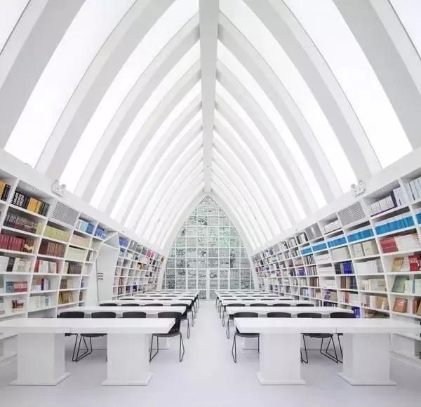 一層的鐘書閣,古典似迷宮,采用九宮格的設(shè)計,每個空間都有不同的主題。二層的鐘書閣,明亮如圣殿,透明的穹頂和潔白的墻體,讓人不自覺就壓低了聲音,放慢了腳步。