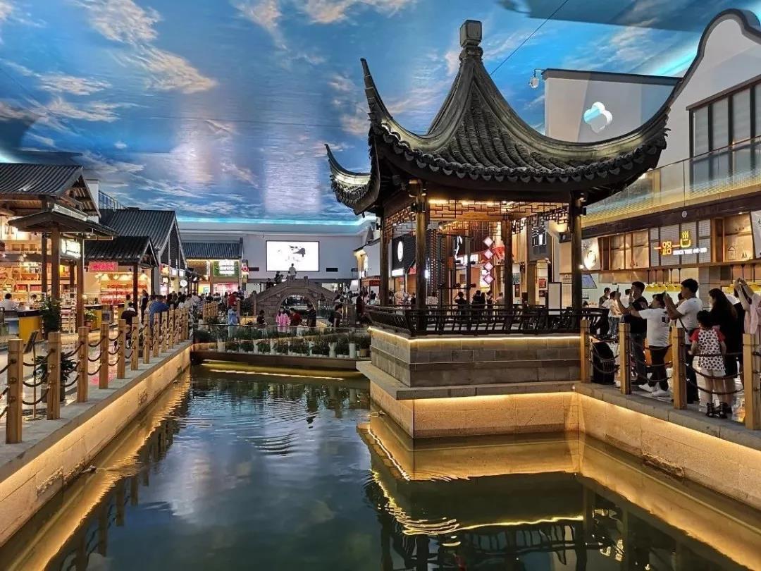 拱橋、屋檐、戲臺、樓閣…..小橋流水,亭臺軒榭水聲潺潺,整體空間設(shè)計像是融入了蘇式建筑的威尼斯人酒店。一路上不少進(jìn)進(jìn)出出的旅客在此打卡拍照,你方唱罷我登場。