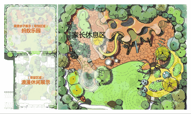 “牧兮親子”在樂園的中心地區(qū),設(shè)計(jì)了一個(gè)放大螞蟻洞穴的多功能場(chǎng)景,整個(gè)外觀就是一個(gè)巨大的螞蟻洞穴,孩子們可以在里面捉迷藏,做游戲。螞蟻洞穴與外部有兩個(gè)大型滑梯,起到聯(lián)系內(nèi)外部的作用。