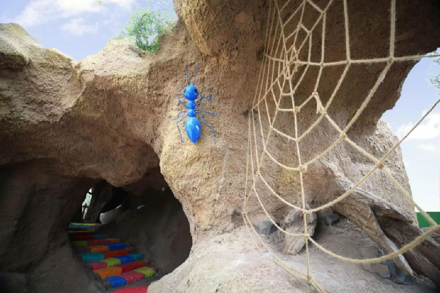 在螞蟻洞穴的墻壁上,也設(shè)置了可以讓兒童用來攀爬的攀巖設(shè)施。在保證安全性的同時(shí)也使得游戲內(nèi)容豐富多樣且形象化。