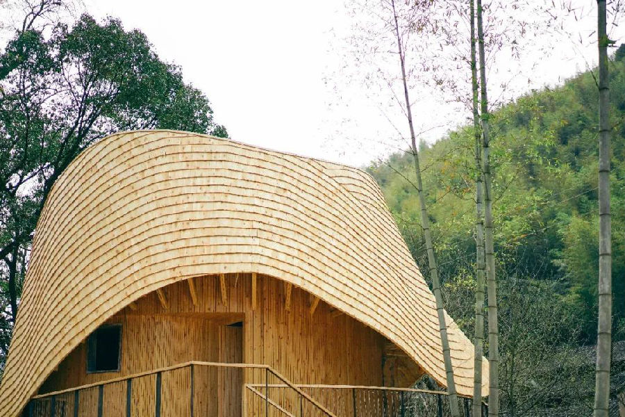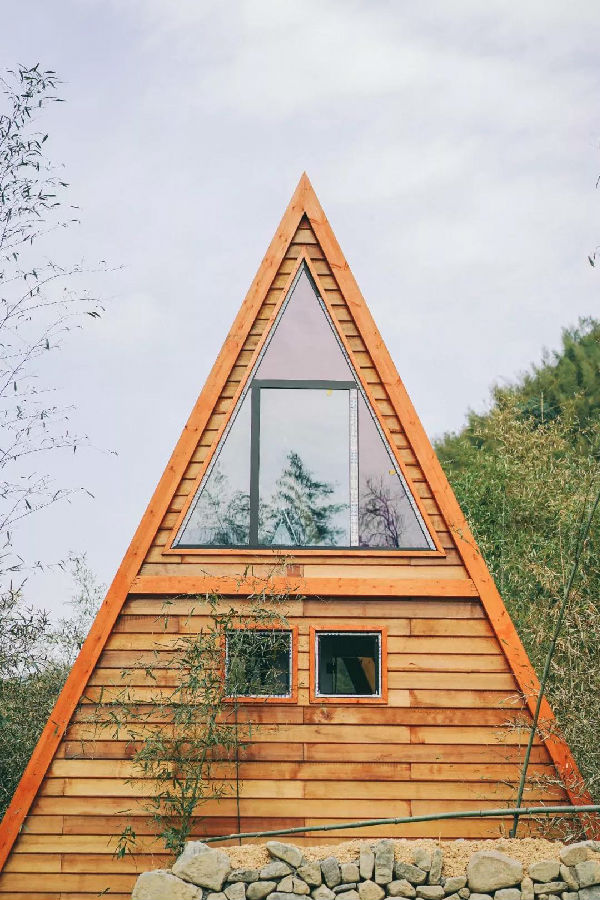 建筑的弧頂形態(tài)流暢,大老遠(yuǎn)就很引人注目??拷?xì)看,每一塊木頭的形狀都是獨(dú)一無二的。同時(shí)設(shè)計(jì)師根據(jù)人的動(dòng)線和視線,開啟了多個(gè)視覺窗戶,使得在鳥巢loft中站、坐、臥、仰,可以欣賞到周遭的不同風(fēng)光。