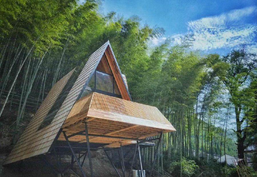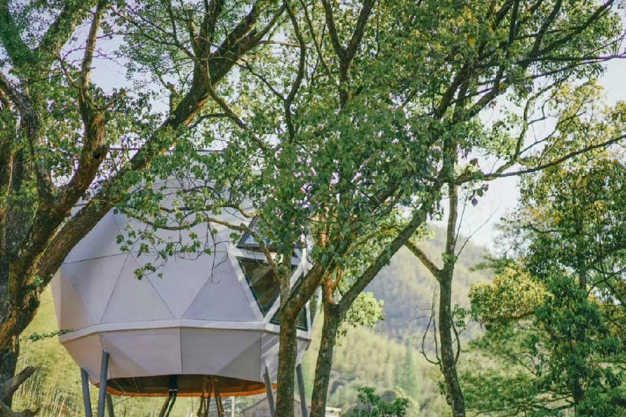 樹蛙部落有11套樹蛙樹屋、1個(gè)穹頂屋、1個(gè)鳥巢loft、1個(gè)房車、4個(gè)樹蛙帳篷。