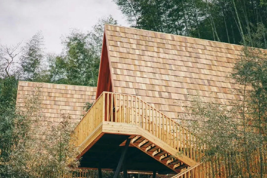 為了呈現(xiàn)完美的樹蛙部落,對(duì)環(huán)境的干擾降低到最小,通過全原木材質(zhì)拉近與森林的距離。