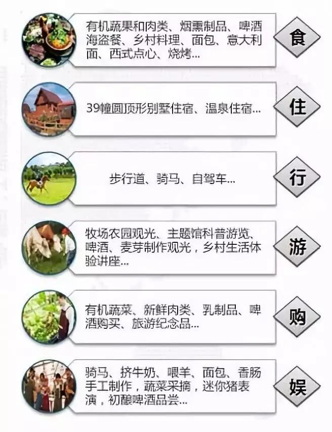 農(nóng)場(chǎng)主要分為四大區(qū)域,分別提供觀光游覽、科普教育、產(chǎn)品展覽、餐飲美食、休閑體驗(yàn)、商品購(gòu)買、度假住宿等服務(wù)。