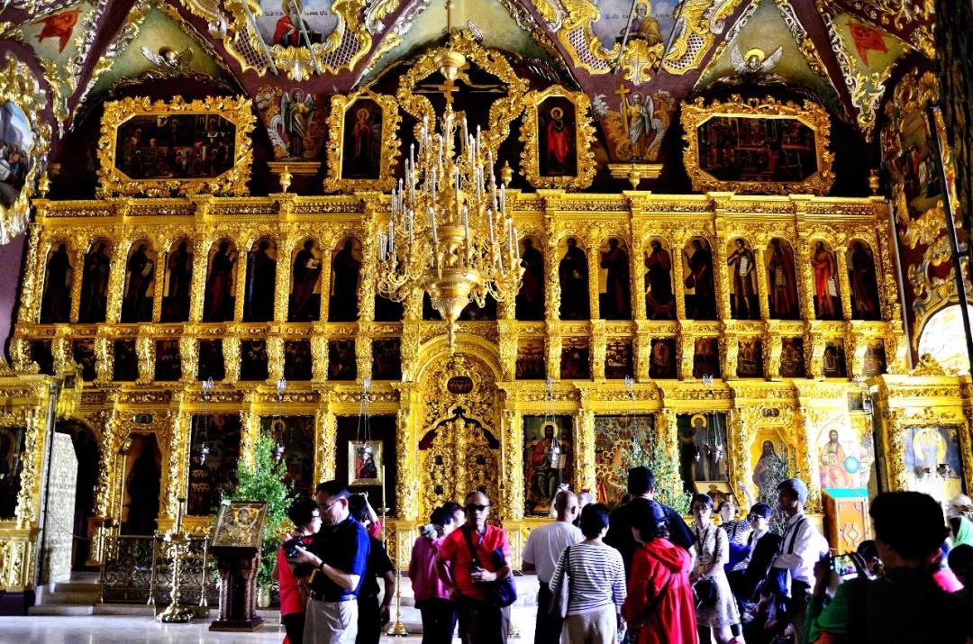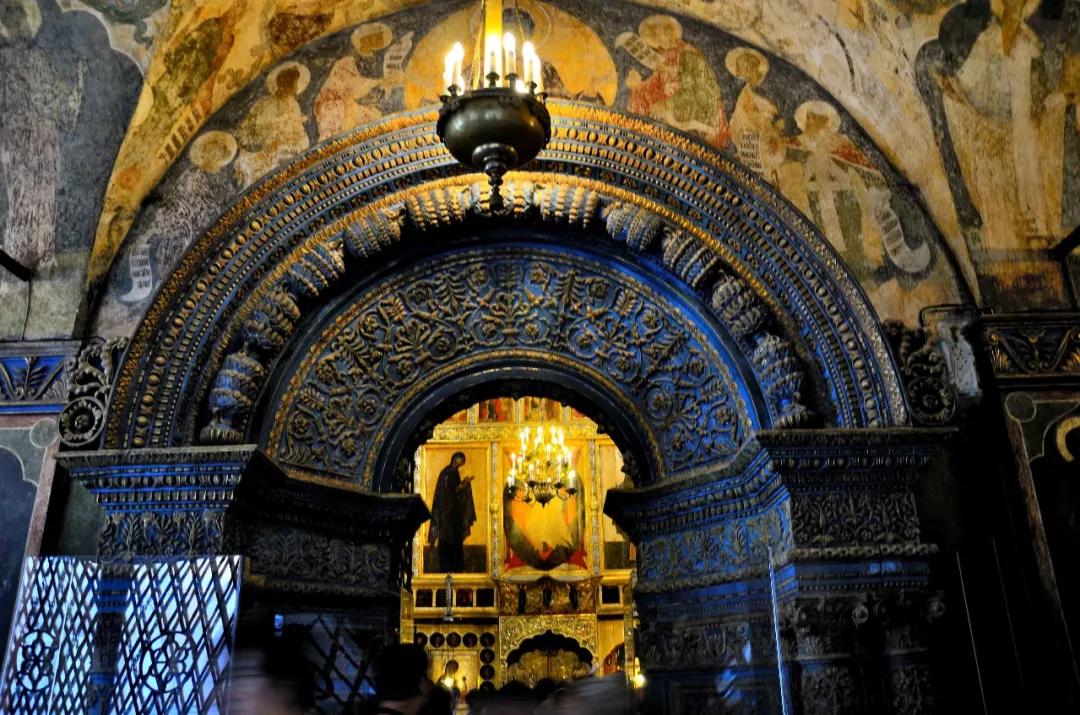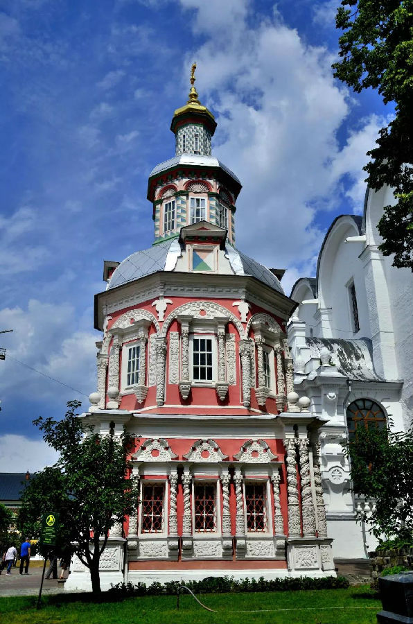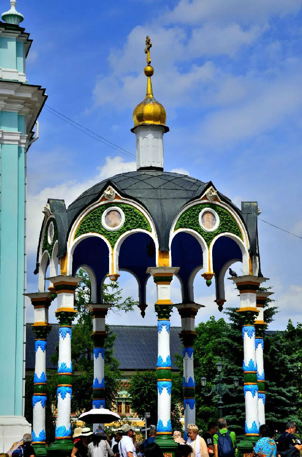 這里是一座美麗如童話般的建筑群:塔尖直指蒼穹代表著虔誠與忠貞,鐘樓高聳入云卻又精雕細(xì)琢,壁畫色彩濃郁極具視覺沖擊力,哪怕是一個小亭子從頭到腳處處可見匠心。你想象不出性格彪悍的俄羅斯粗漢子,怎么偏偏像個巧妹子,鼓搗出這么精美的東西!