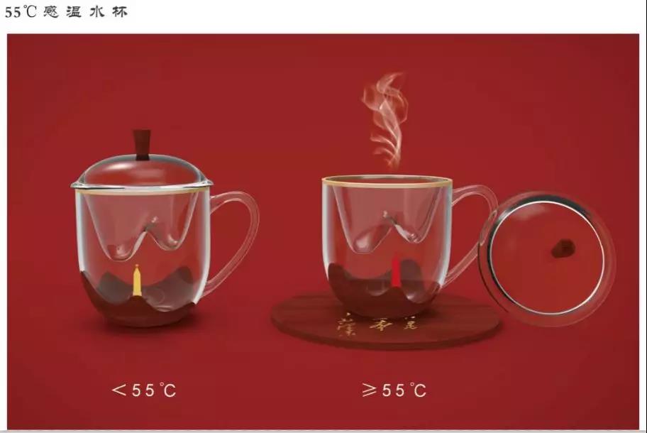 這款茶杯便是以毛主席命名的“勝利杯”為杯型,以獨特的棗木結合玻璃材質,巧妙將太行山與西柏坡紀念碑的景象呈現出來,紀念碑圖案上覆有熱敏材料可感知溫度,當水溫達到55度時紀念塔會顯現紅色提醒用戶防止燙傷。茶漏的太行山造型獨具匠心,蓋鈕處的“冀”字突出河北特色。包裝禮盒整體仿軍用水壺既視感,采用毛氈盒身和棗木盒蓋結合方式,棗木蓋上正面刻有毛主席在三大戰(zhàn)役勝利后的著名論斷“兵民是勝利之本”,背面刻“冀”字印章,亦可作為杯墊使用。